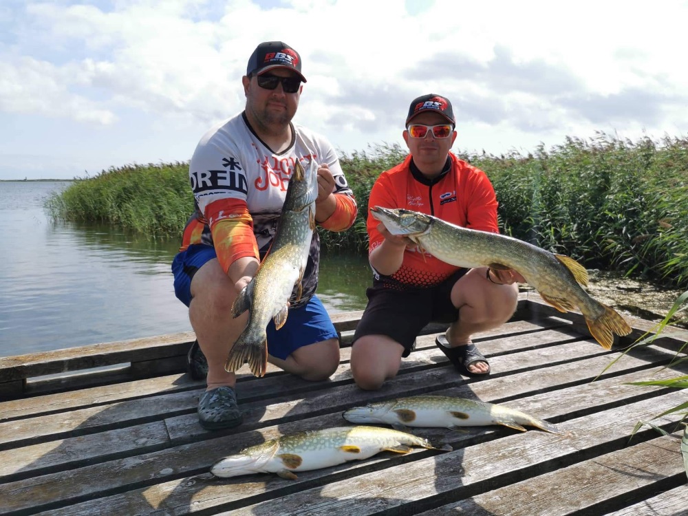 Слипанулись и полетели на точку - первые пару часов прошли без поклевок и вот наконец первая щука показала себя, промахнувшись по приманке напарника. Зашли на очередной дрейф и начала прорисовываться зона в которой сидела зубастая. Так как целью было изучение акватории, то на поимку рыбы много времени не тратили, ходили, изучали, писали карты в эхолот. Место понравилось, есть интересные точки. За неполный день подняли на борт 6 щук весом 2-3кг и поимели примерно столько же сходов, одна из щук ушла с пирсингом в виде моего любимого baby buster'a в расцветке, которую, к сожалению, сняли с производства. Вся рыба была очень агрессивная и завести в подсак двушку было не так-то просто, приходилось терпеть и потеть