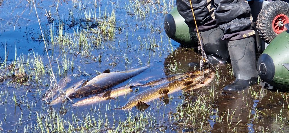 Утром первая лодка ушла в 6, остальные в 9. У меня до 14 полный 0. Родственник две упустил и взял ещё около двушки. Наш друг в пятницу видел 2 щуки за блесной и в субботу 6,2,1,1.