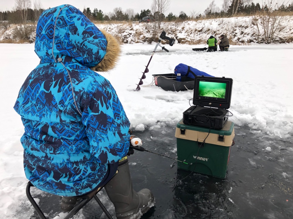 Думаю это длилось минут 20. Ломая перегородки между лунками бур погнул малехо. Но тут было не до жиру. Лед на удивление толстый. Около 50см. Пришлось разоблачится до голого торса, чтобы леску передать с одной на четыре. И вот голова въехала вертикально. Багориком под жабру и.........ю