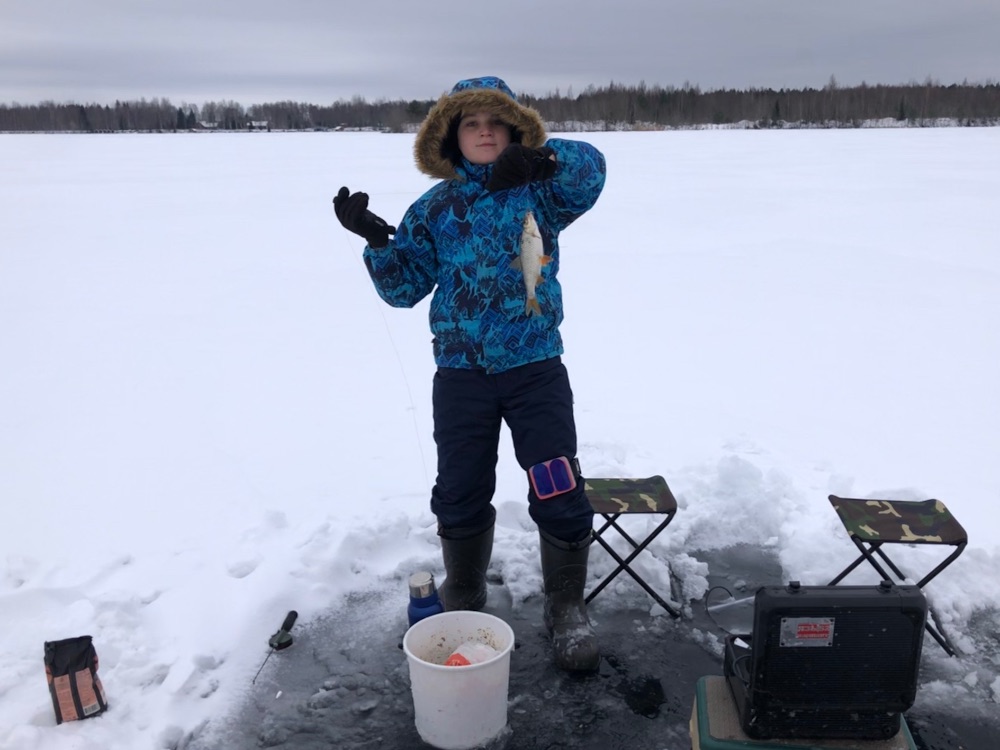 Приехал. Один рыбак медитировал недалече. закормил три лунки. плоток поймал. Две по закону жерлицы выставил. На одной сразу флаг, но даже плотка не поцокана. Думаю окунь.