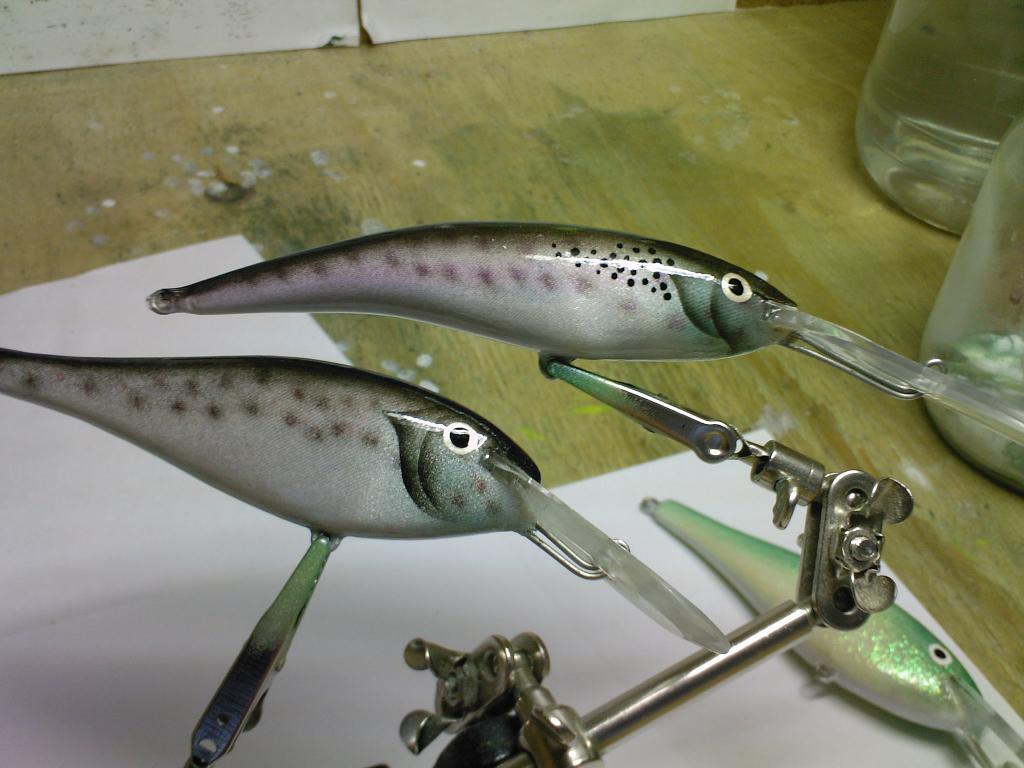 Яхтным лаком. У меня глубинников нет. Делаю только ультралайтовые воблерки с простой прямой лопаткой. На шершавой поверхности лак держится хорошо и с прозрачностью всё нормуль, ну желтизны чуток добавляет, но это уже от лака зависит, меня это не беспокоит.vdv писал(а): тут интересно было бы узнать, каким лаком покрываешь? Оргстекло, полистирол и поликарбонат на дух не выдерживают лаков с растворителями. Изгиб лопатки это дело усугубляет.