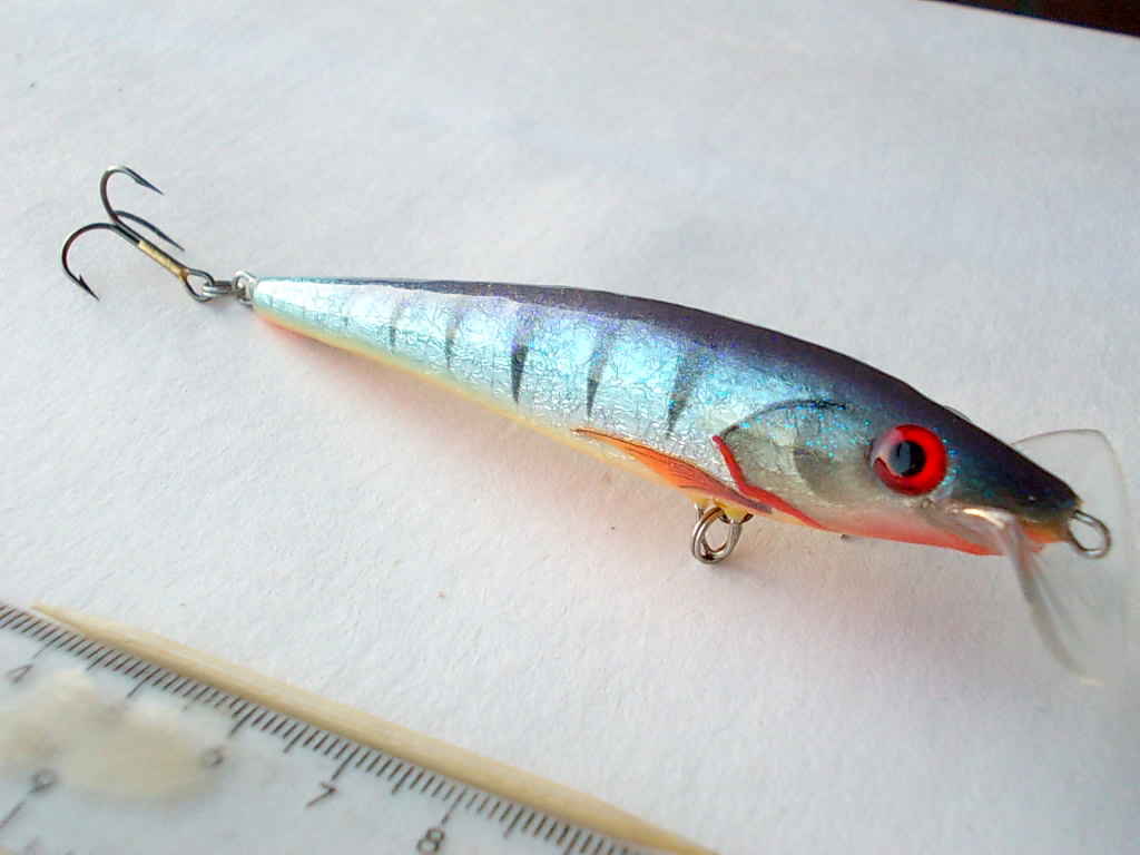- бальса, 12гр, плав., 60мм (примерно 5 гр свинца), погремушка, в прошлом году почти все щуки - на эту модель