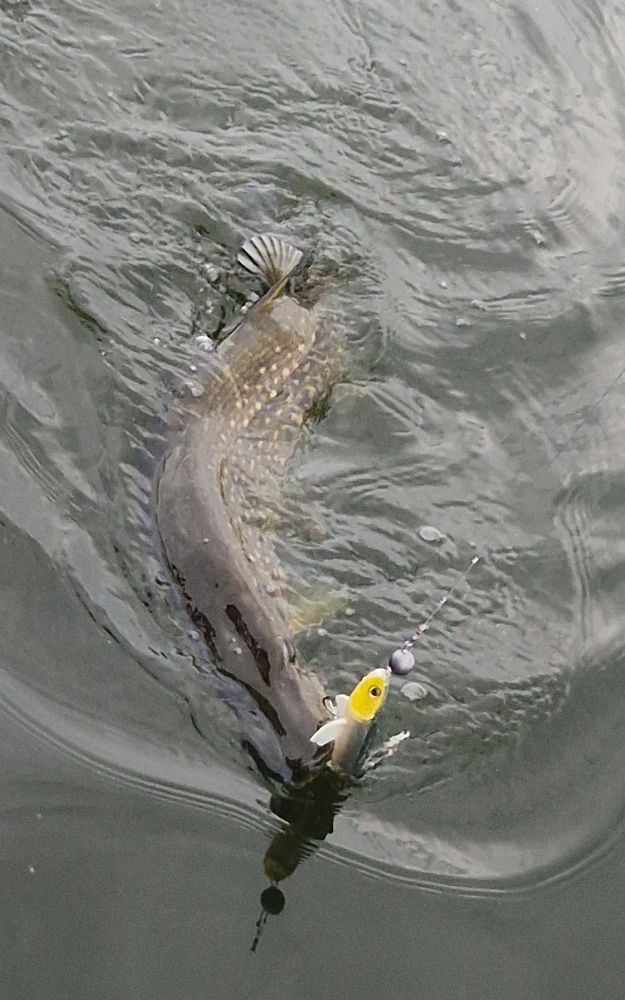 даже закидывать больше не стал, достаточно. А потом ходил-ходил, ходил-ходил, и ощущение, как в лужу кидаешь, ни кто не ущипнёт наживку, леску не заденет, кормушки не стукнет. Если другой раз и поклёвку увидишь уже праздник. Довели. Отправился вчера в магаз, выбрал спиннинг с катушкой, неплохие и не дорогие, немножко приманок силиконовых, к ним джиг головок, несколько поводков, и на вечернюю прогулку с подругой взял палочку. Двух шнурков поймали, что ж начало положено, щурят подростать, сами спать. А утром опять гулять и буквально за десять минут две щучки в копилку. Оно конечно и хватит, удовольствие получено, но азарт мать его, тока проснулся. Меняю блёсенку , другие тоже надо проверить и за пол часа получаю два хода, и третюю вытаскиваю. Вот тут точно стоп. Это уже за глаза. Вот так утренняя прогулочка порадовала, и перед женой отмазка за вчерашний траты.