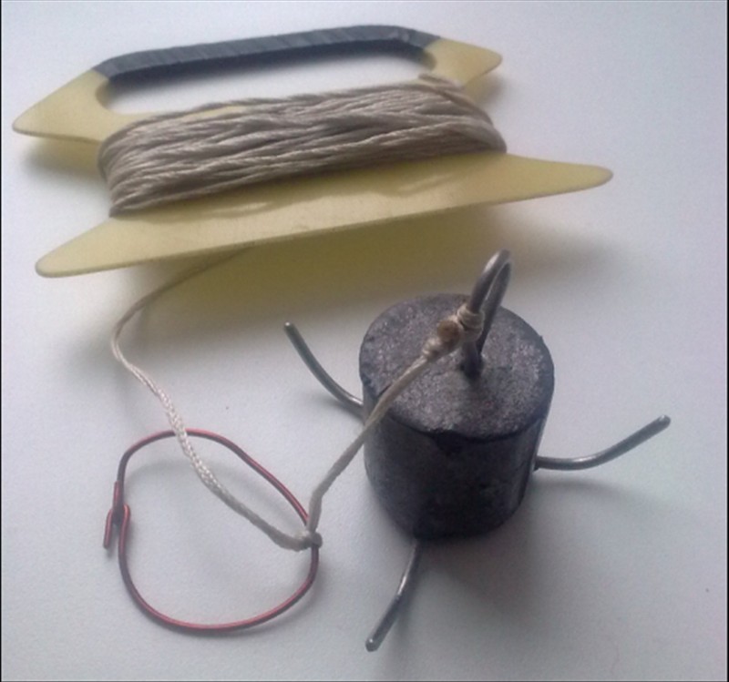 Мой вариант в изготовлении достаточно прост, с электродов сбивается обмазка, зачищаются до чистого металла, один сгибается пополам так, чтобы на сгибе получилось ушко. К получившейся конструкции прихватывается сваркой ещё кусочек. Теперь свободные концы сгибаются чтобы получился большущий тройник, втыкаются в песок, сверху одевается цилиндр, согнутый из алюминиевого листа около 1мм толщиной, можно оцинкованную жесть (не лужёную) и заливается сверху расплавленным свинцом. После остывания формочка снимается, осталось обрезать и обточить концы проволоки, заводное колечко для крепления к шнуру с зацепом внизу, делаю из медной проволоки около 1,5мм диаметром.
