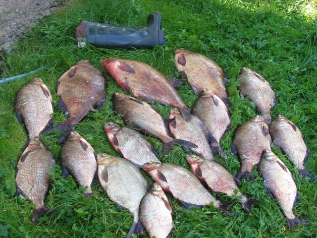 какой-то лещ в этом году непонятный. с 5 попытки удалось поймать 4 штуки. как всегда нашел стаю на глубине 9 м. стал неподалеку, прикормил. через некоторое время пошли пузыри и ... не клюет. поставил большую мормышку, поменял червей на опарыша с кукурузой в пропорции, 5 к 1, поднял над дном на 30 см и сразу поклевка. первый под 3 кило в лодке. далее в течение часа еще 3 с каждым разом меньше и меньше. последний на 1,5. на этом лещ закончился и поперла плотва как бешеная. натаскал 8 кг, потом надоело. говорят активизировался окунь. надо перестраиваться.