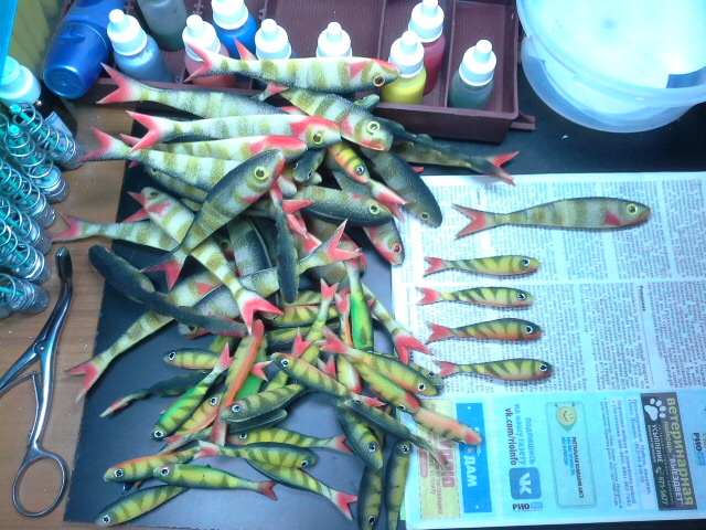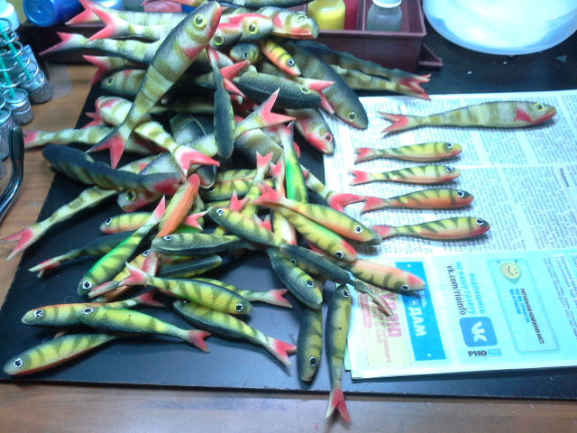 - у меня было несколько попыток сделать желтый воблер с чёрными полосками,всё получалось, только на них не клевало, до тех пор пока спинку зелёным не задуеш