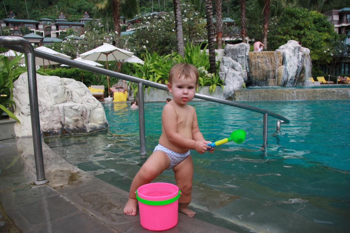 С балкона гостишки открывается вот такой вид: На пляжу меленький белый песочек... Гостиница находится в тихой бухте, до которой можно добратся только на лодке... Нас домчала неплохое корыто со спаркой из двух Ямах по 250 сил... Пляж достаточно уединенный, на котором могут быть только постояльцы гостиницы, а так как их не очень много, то места хватает моим дочуням разгуляться по полной и никому при этом не мешать: Иногда море утомляет и хочется переключиться на бассейн: Добавлено спустя 14 минут 19 секунд: