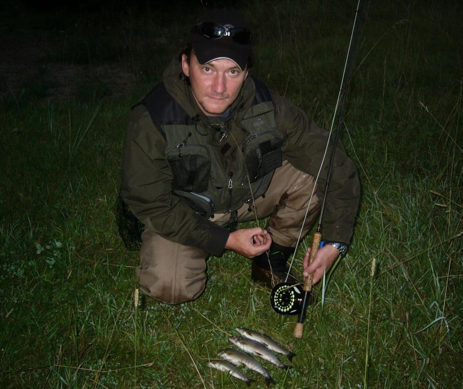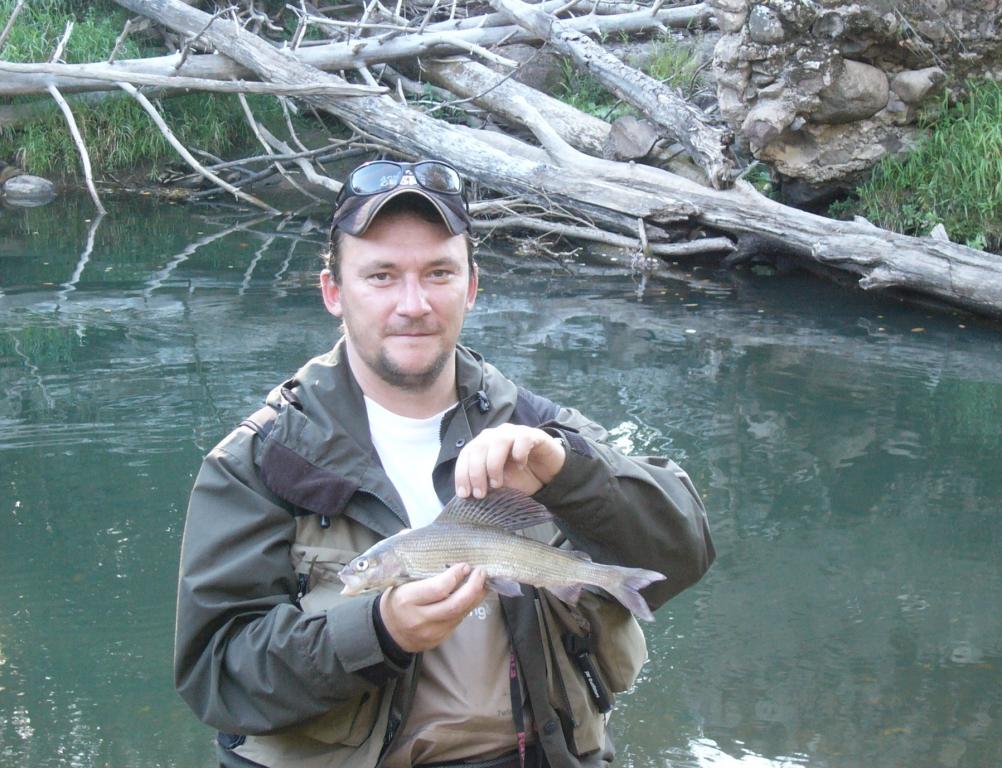 Прошел год и я опять на своей хариусовой речке. За год река очень изменилась. Старых ямок уже нет и почти ничего не узнать. Весной смыло все завалы из деревьев и очень много намыло песка.Но рыба присутствует. На нимфу поймал 6 хариусов, но не очень крупных. Отец поймал 3 шт, но хороших. Впроцессе рыбалки поняли, что клюет хорошо на кузнечика. Быстренько переместились на дорогу и наловили штук 15 кузнецов, но это все в жару и в вейдерсах. Не Айсс. Но кузнечики работают. дал задание домашним, завтра опять буду порообовать на кузнечика, хитрый рыб плавающую муху избегает.