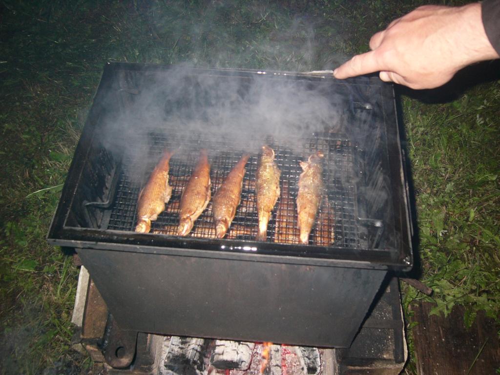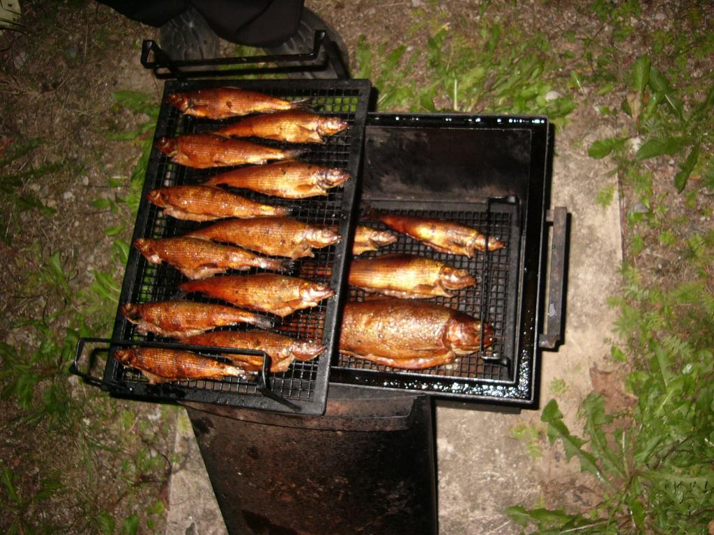 Самая крупная рыба была поймана на 300 гр.(своеобразный рекорд для этой речки) Да, копченый хариус вкусный но и жареный ничего( радужная форель на фото в состав данного улова не входила, просто небольшое кулинарное дополнение родом из Финляндии)