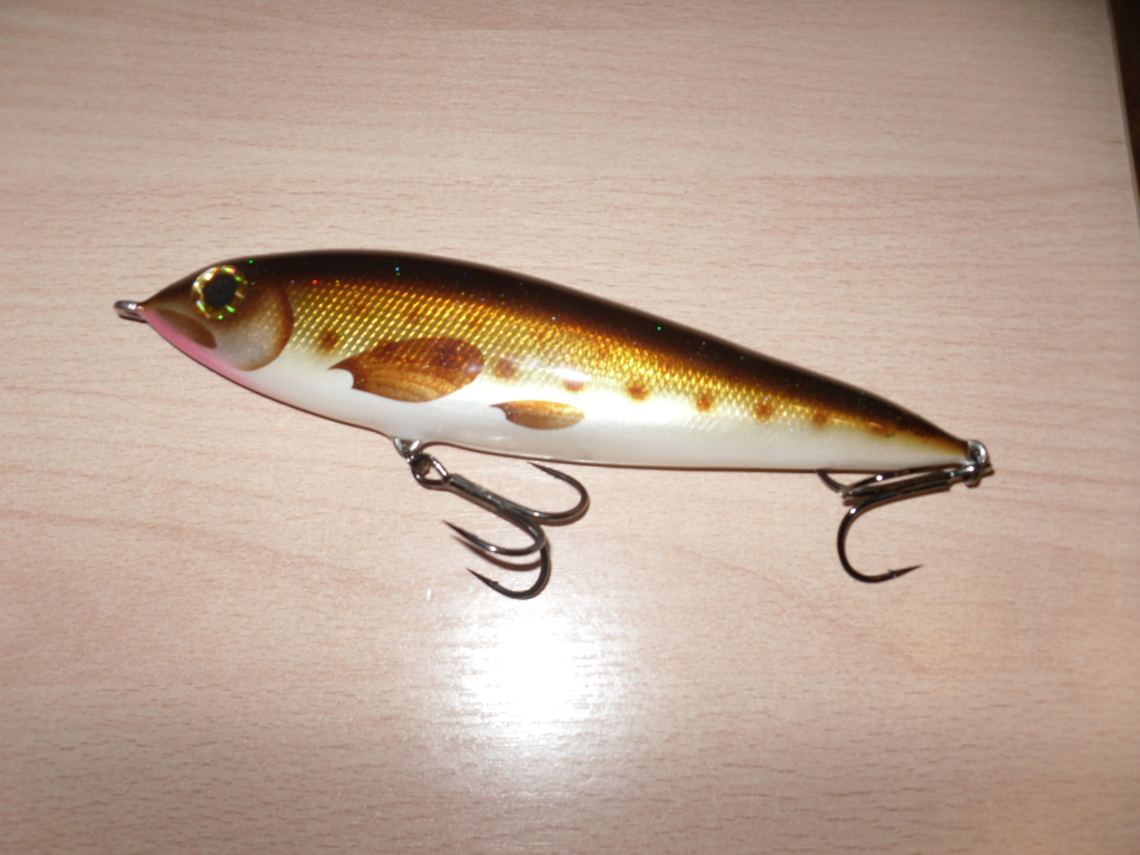 Серия Густера у меня она представлена в двух вариантах плавучести и трех вариантах цвета. Очень странная игрушка короткоходна идет по поверхности(плавающие версии) как умудряется поднимать щуку с ямы- честно скажу не понимаю, но реально поднимает и работает. Очень понравилась версия в натуральной расцветке летом, когда на Волге в протоках пошел силитерный Лещ. Сечас конечно видим что игрушки подгружены- поясню, натурал все равно плавает но зато очень медленно всплывает и стал чуть глубже погружаться- осень все ж, с яркой спиной- этот подгружен гораздо сильней- подгрузил только для того что б сейчас прочесывать глубины до 4-6 метров. Цвет окунь- медленно тонет- идет на глубине до 2 метров с ленивыми глайдами. В лето, конечно, снова сниму подгруздку, поскольку именно эти игрушки идеально работают на глубине до 50см, что очень удобно для ловли в окнах. Открою маленький секрет, сейчас Павел делает для меня Мега Густеру в весе 180грамм. Игрушка ловит, но любит очень ленивую проводку. Shad S- тот же Шед- скажете вы, что и был описан выше. Это далеко не так . Этот тонет и довольно весело тонет, хотя и провести на глубине 50-60сантиметров реально. Но конек этой игрушки игра на глубине 2-3 метра на падении или старте со дна. Стабильно держит хорошие длинные глайды на классической проводке, но я предпочитаю проводить его очень медленно с паузой до 5 секунд, самое приятное (или не приятное) но именно его очень любят кушать летом окуни. Есть еще и промежуточная версия- медленно тонущий, как раз такой я отдал Эдуарду и именно на него он ловит свои трофеи практически каждую рыбалку. Хочу тонущую версию в каком то ярком варианте.