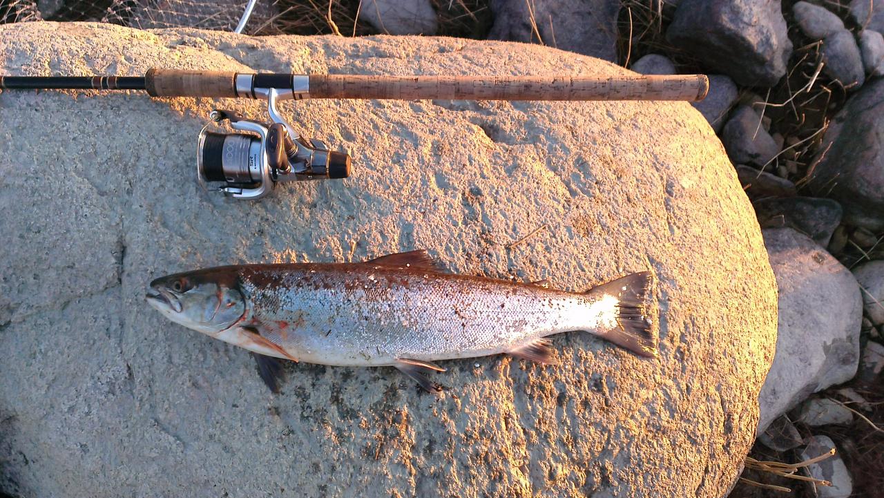 Сегодня открывал для себя сезон. Понедельник, короткий день- первая возможность вырваться на море. Даже прогноз по ветру не испугал, дальше оттягивать было нельзя. Созвонился с Андреем(aphis),предложил прокатится, собрались, поехали. Направились на запад, целенаправленно посетить "огород". В 16.00 на воде, на 4-ом забросе откликнулась рыба(лёгкие удары), на 5-ом садится рыба "недомерок", не стал мочить подсачек, поднял за блесну, стряхнул с тройника(надо было торопится). На 6-ом забросе садится рыба покрупней, немного пришлось "поуговаривать" и она согласилась, что пора ей на засолку. Опять без подсачека, волоком на берег и снова в воду. Рано делать было перекур. На 8-ом забросе опять почувствовались лёгкие удары, словно кто то давал понять " я здесь "