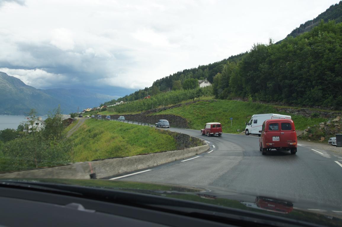Дороги поменялись сразу, скоростной режим упал. Кстати максимальная разрешенная скорость в Норвегии 80 км/ч за редким исключением.