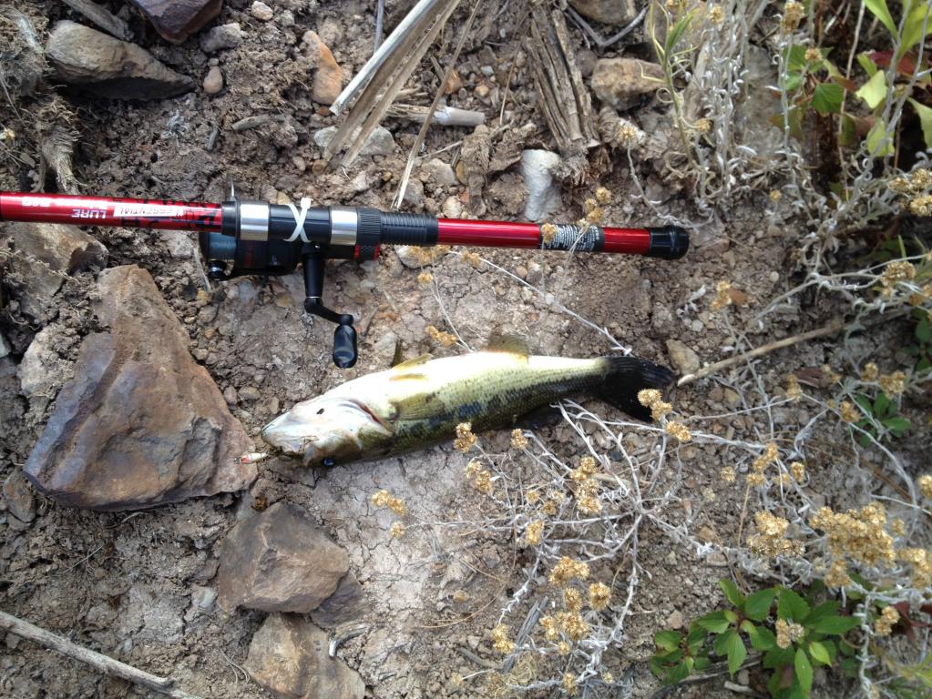 Проехав чуть далее мы остановились на площадке, с которой шла тропа вниз ущелья к озеру. Время позволяло и мы решили спуститься. Я разложил снасть, проверил глубину, насадил кукурузу и закинул удочку. Мои тем временем достали айпад и принялись смотреть мультики. Через три минуты последовала поклевка и я вытащил свой улов, это был маленький басс (как я узнал после). Хищник на кукурузу???!!! Точно как наш окунь, только без полос, полностью светло зеленый кроме брюха конечно. Рыбка была маленькая, но это тоже трофей, поэтому радовался я как ребёнок. Через пять минут последовала еще поклёвка и тут я почувствовал борьбу сильной рыбы, я решил что теперь то точно карп. Но опять это был басс, теперь только уже солидного размера под кило. Теперь восторг был уже и у моих зрителей. Началась поспешная фотосессия. Но я решил, что для хорошего фото надо помыть рыбу от береговой грязи, что было большой ошибкой, “хорошего фото” сделать не удалось, рыба вырвалась у меня из рук. Уже вечерело и мы решили вернутся. Солнце в горах садится очень быстро и обратный подъём был уже в полной темноте. Весь последующий вечер я вспоминал как басс облапошив меня ушел восвояси. Но была сделана очень важная заметка, при вытаскивании снасти маленькие бассы жадно бросались на кукурузу. Это меня сильно подогревало к реваншу. Через день я вернулся в торговый центр с желанием купить блесен. Показав рыбу на фото, я спросил у продавца совет по блесне, на что мне объяснили, что местные ловят басса на кукурузу и личинку какой то мухи. Но это меня никак не успокаивало. Основной выбор блесен был для морской рыбалки и ничего, что меня самого привлекало я не видел. Я взял единственный очень маленький воблер и еще пару блесен, которые на мой взгляд могли бы привлечь басса. Вернувшись на озеро, с первого заброса на маленький воблер, который закинуть моей снастью было сложно и тонул очень мало, я подсек маленько басса. Дело пошло, подумал я. Поймав еще несколько бассов незачетного размера, я попробовал все остальные блесны. Интересовал рыбу только воблер. Я огрузил насадку грузиками выше по леске. Дальность заброса чуть возросла, но оглубляемость существенно изменилась. Теперь я стал ждать поклевки зачетной рыбы. Но поклевок больше не было, такое ощущение, что рыба уже уколотая, поняла уловку и приманкой больше не интересовалась. Я решил оставить именно этот воблер в качестве приманки и проверить еще доступные места выхода к воде, так как из за растительности или крутого берега это не везде можно было сделать. Выйдя на плес я увидел зачетного басса плавающего на поверхности, который выйдя из под укрытия веток кустов вышел меня оценить, немного покружил и плавно ушел восвояси. Закинуть в эту заводь я не рискнул в виду присутствия кустов вокруг, побоявшись потерять единственную рабочую приманку. Надо отметить, что каждый раз как я выходил к берегу, маленькие бассы сразу собирались с разных сторон посмотреть на меня и потусовавшись чуть, расходились. Рыба очень активная и периодически были слышны всплески от попыток поймать какое нибудь насекомое с поверхности. Потихоньку я освоил навыки ловли бассов и начал ловить зачетные экземпляры. Итогом дня стала поимка 7 крупных бассов примерно по кило (маленьких я не считал), из которых двух я взял на домой на ужин и одного “карася”, я так и не узнал н