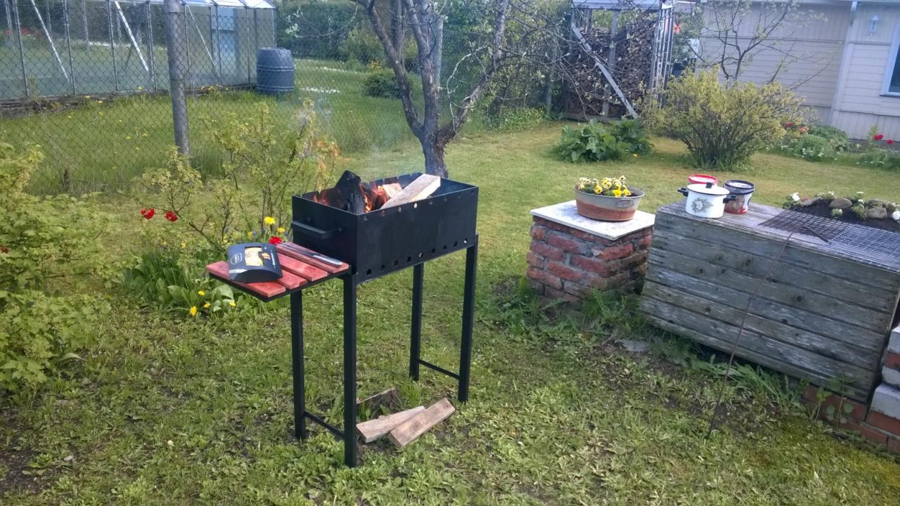 Складной мангал с крышкой, решеткой, возможностью установить решетку на два уровня(верхний, когда угли горячие и нижний, когда угли уже остывают), съемные ножки стоит 60евро, просто мангал+ножки (без крышки и решетки) 40е.