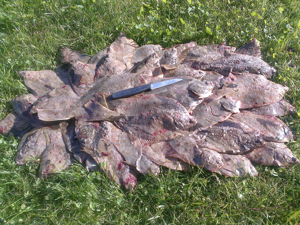 Как только солнце скрылось за горизонтом, получаю выход на все палки. Камбала откровенно мелковата. Разрешенный размер с 18см. Засим фильтруем.