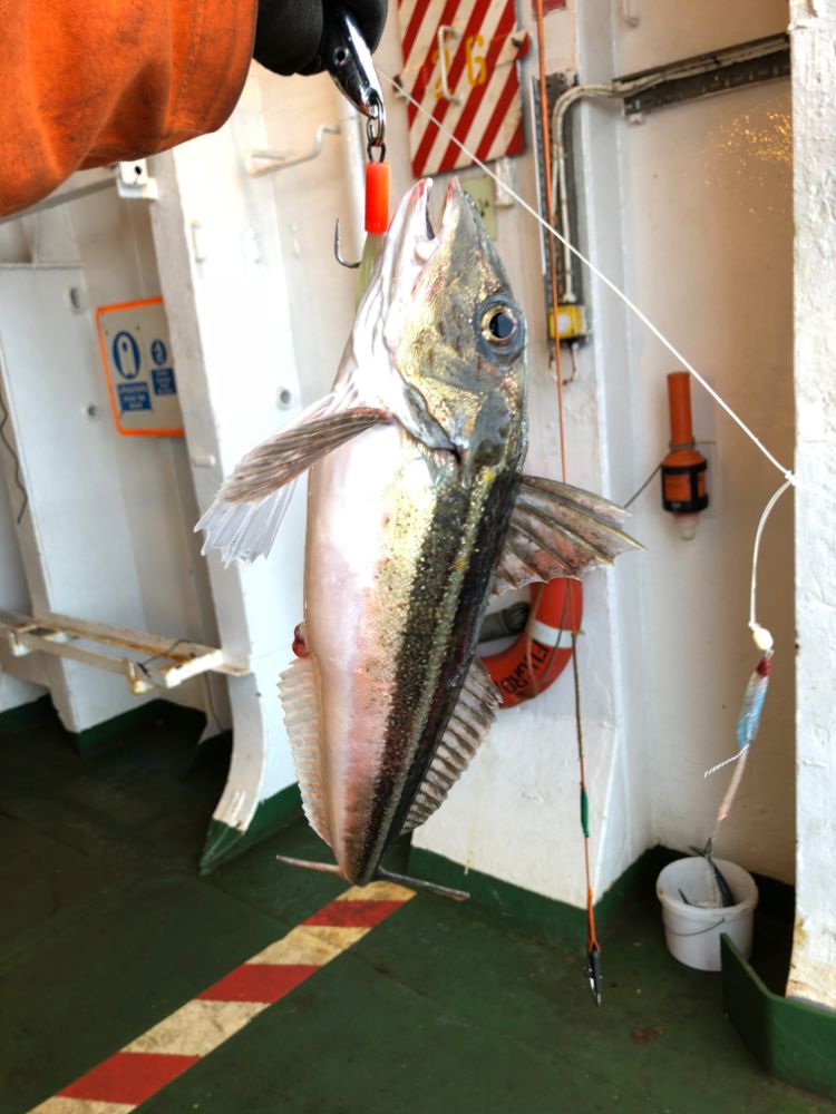 Несколько дней подряд делали пробы плотности грунта, останавливаясь на каждой станции минут по 10-15. Это были идеальные условия для рыбалки, так-как судно стояло в ДиПи и достать до дна 300-от граммовым пилкером на глубине 110 - 140 метров труда не составляло. На одной из станций села Сайра, довольно крупная. Ну, тут-то азарт и пошёл!