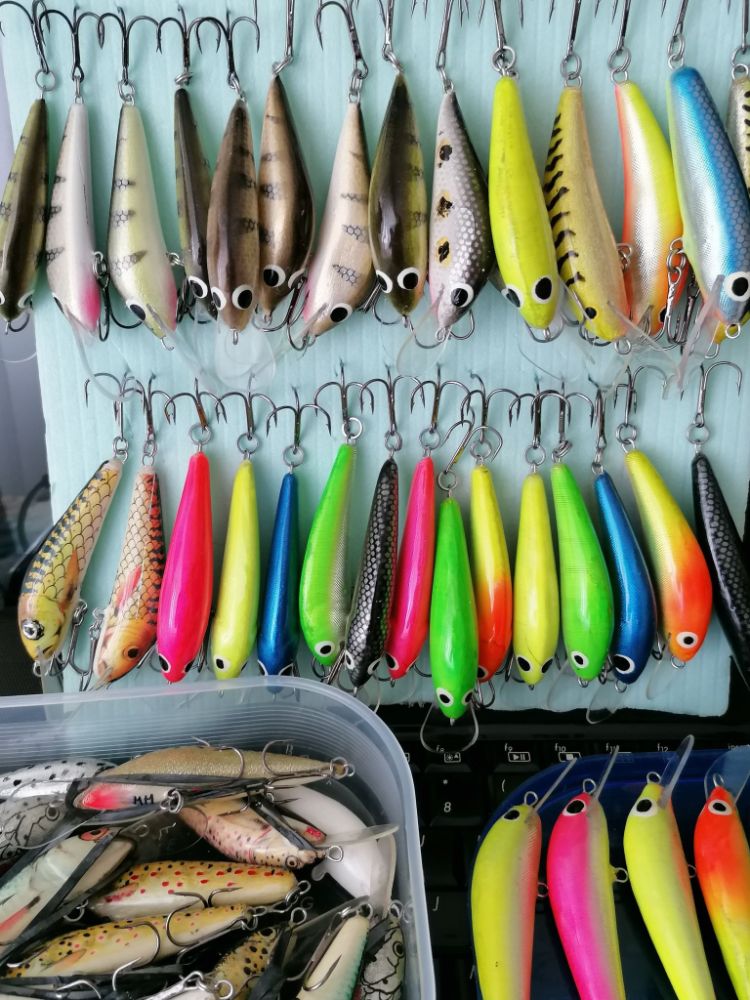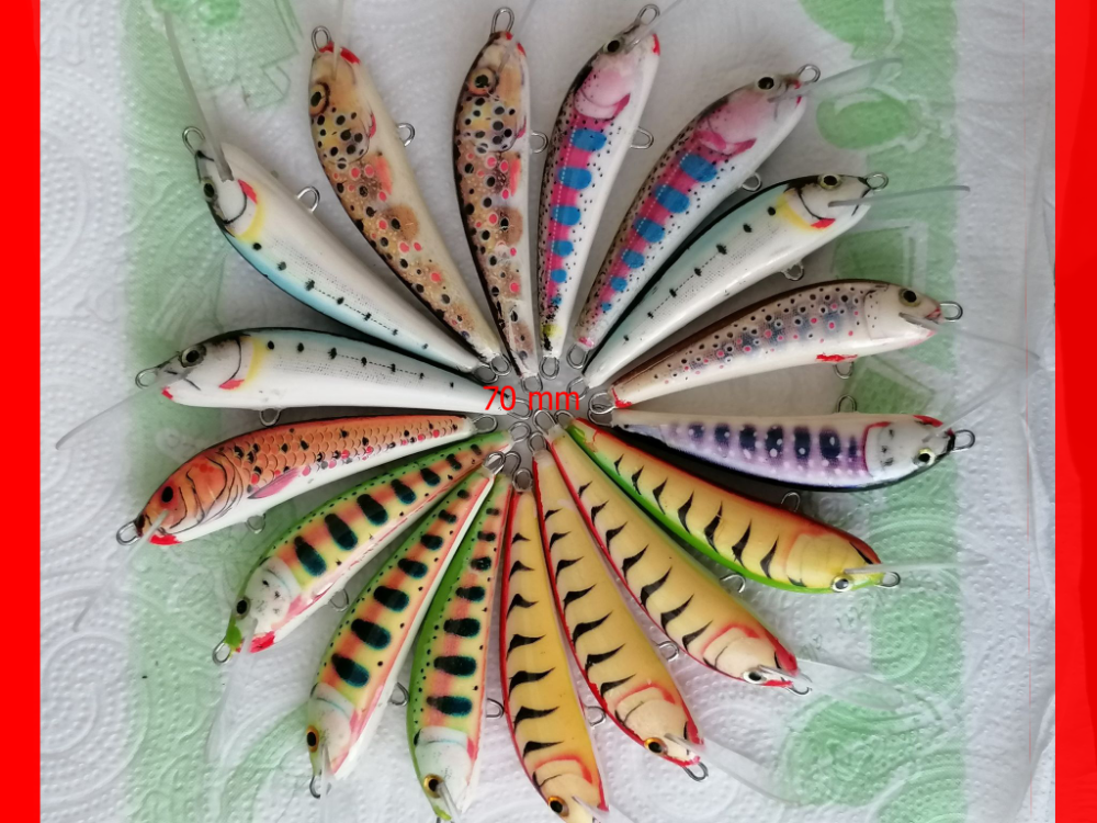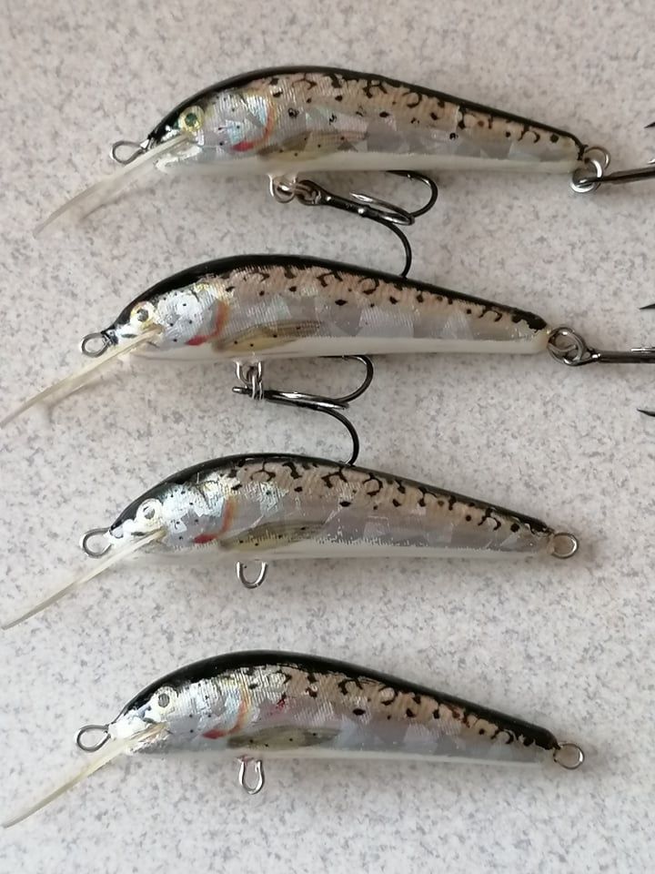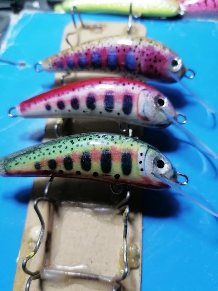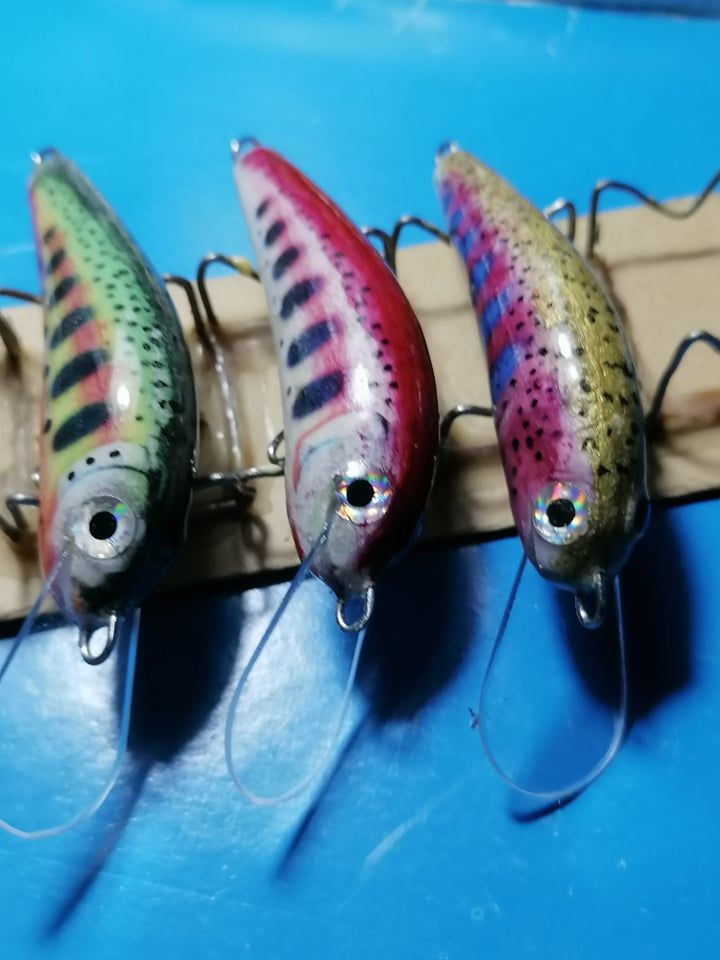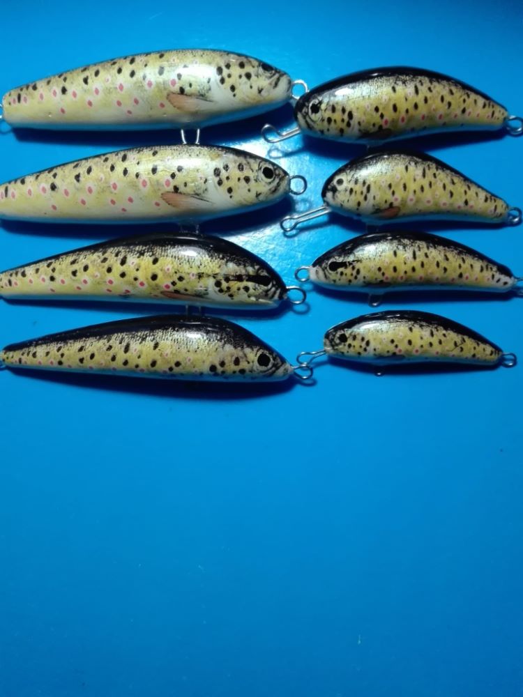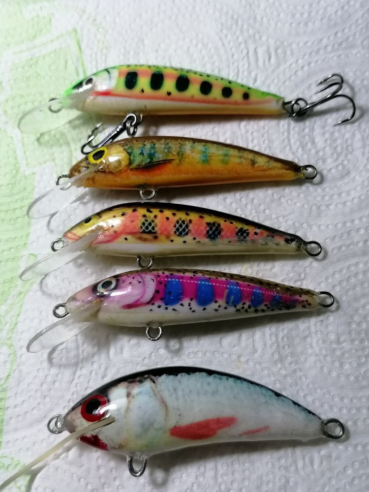 Воблеры на форель и морскую форель, застряли с моей мокрой декалью. Кумжа, радужная форель и хариус