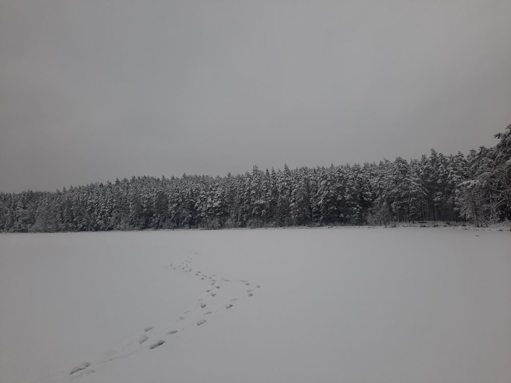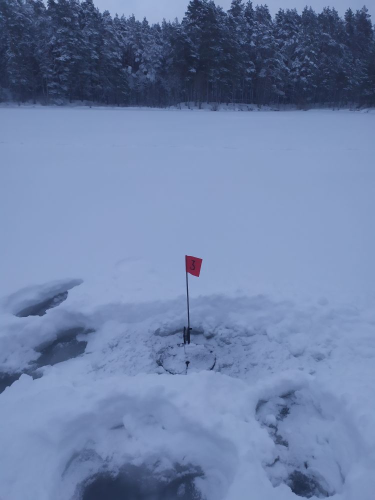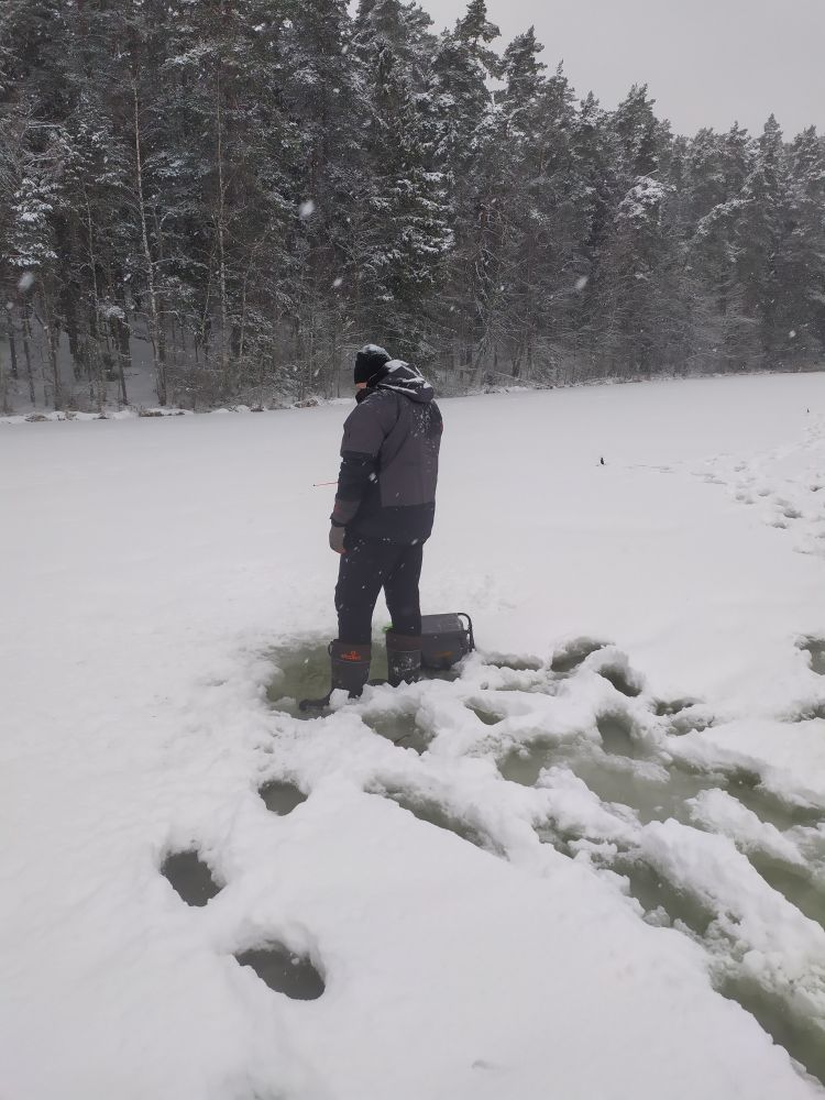 Когда решили что пора собираться до дому заметили летающий дрон над озером, через пол часа когда уже доставал последнюю жерлицу, вышел из за леса из за гор работник Päästeamet поприветствовав меня, начал мне рассказывать о том что выход на лёд в данный день запрещён, и то что толщина льда на этом озере от 10-20см он прекрасно знает, попросил меня дождаться в следующий раз разрешения выхода на лёд от нашего правительства.