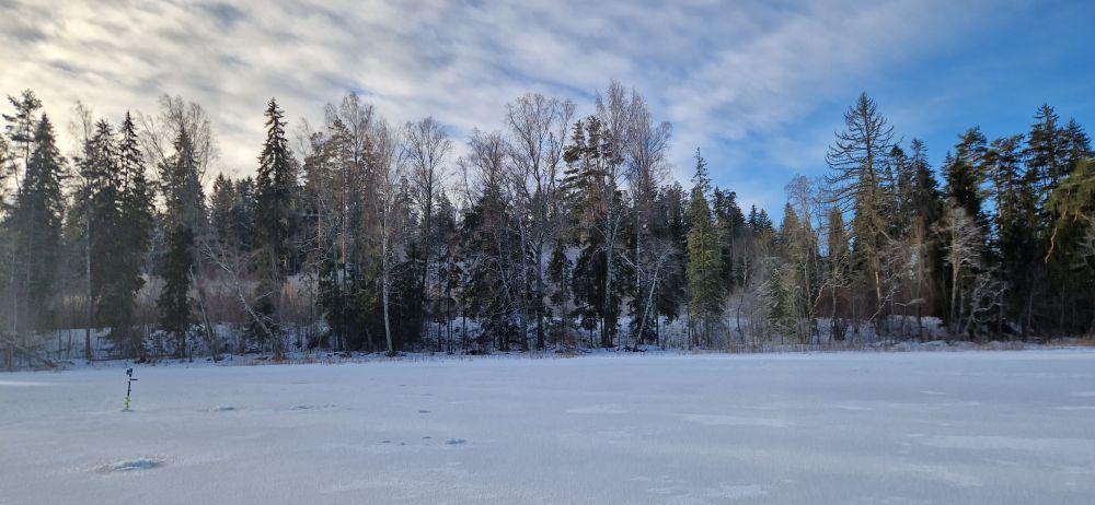 По делам был в Тарту в прошлую субботу, в программе было посещение Мехикоорма, но там промыло и на карте большая зона запрет выхода на лед. Решили посмотреть это симпатичное озеро, рыб видели, но брать на игру ничего не хотело, а опарышем её подчевать мы не планировали. Народ присутствовал, даже с детьми человек 10 видели. В основном под берегом ловили живца и стааили жерлицы, есть интересные ямки под 10 метроа.