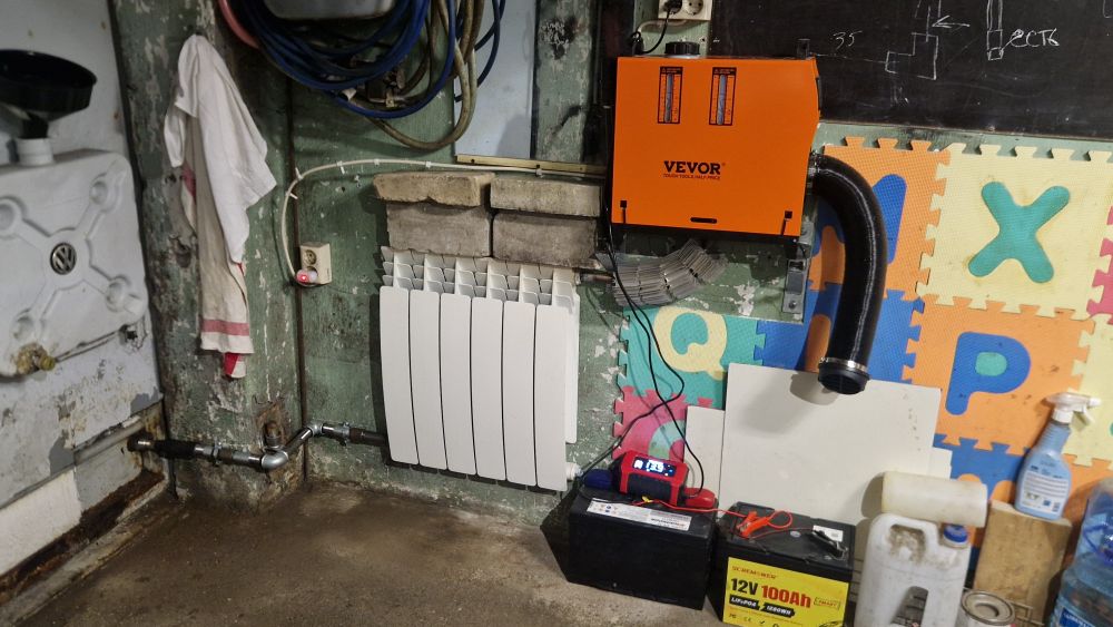 Прихожу в гараж, запускаю от аккамулятора 12 вольт на максимальную мощность минут 15, потом выставляю на 15 градусов и уже через час градусники показывают температуру в разных углах от 9 до 11 градусов. Учитывая отсутствие теплоизоляции результат не плохой, пол сохнет полностья за два дня, гоняю обычно часа 3-4, с уличной температурой 7-3 градуса +, расход в неделю около 5 литров дизельки.